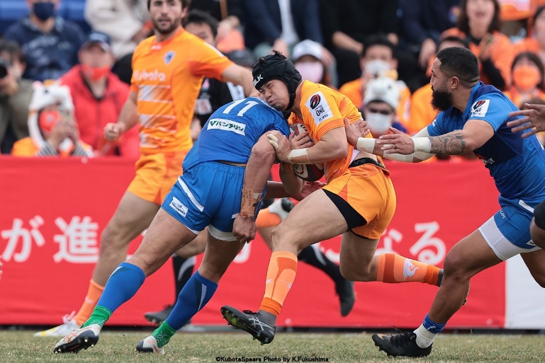 今季まさに台風の目として格上に勝利し勢いに乗るダイナボアーズ。互いに強い接点とディフェンスが強みの両者、11月に行われたプレシーズンマッチでは47‐7でスピアーズが勝利していますが、その際も接点の激しさが目立つ試合となりました。