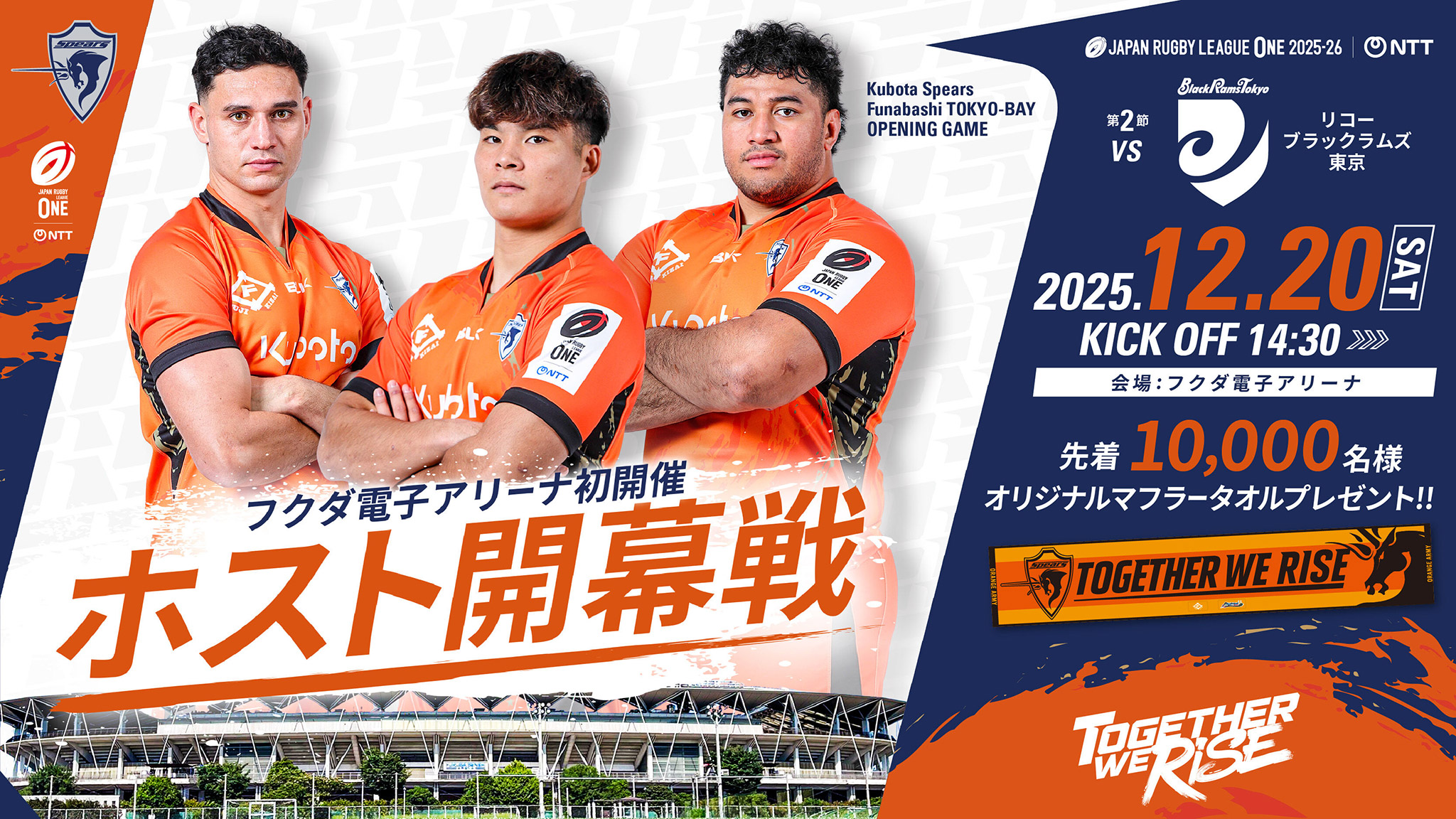 クボタスピアーズ船橋・東京ベイにとって初の千葉県でのホストゲームとなるこの試合、会場は2017年以来となるフクダ電子アリーナでホストゲーム開幕戦を迎えます。8年前のフクアリでの試合から、スピアーズは日本一も経験し大きく成長しました。その進化した姿を千葉県のラグビーファンにお見せします!