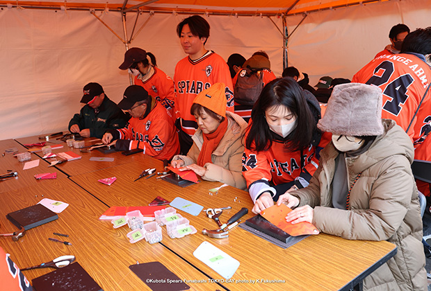 秩父宮ラグビー場正門付近から会場選手入口まで、オレンジのカーペットが敷かれたORANGE ROADを作ります。