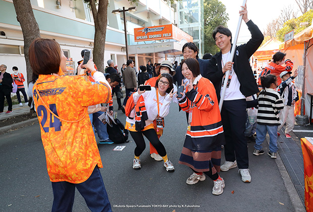 選手が会場入りするタイミングで、選手バス到着場所から会場選手入口まで、オレンジのカーペットが敷かれたORANGE ROADを作ります。オレンジアーミーの花道を作り、スピアーズ選手たちを会場に送り出しましょう!