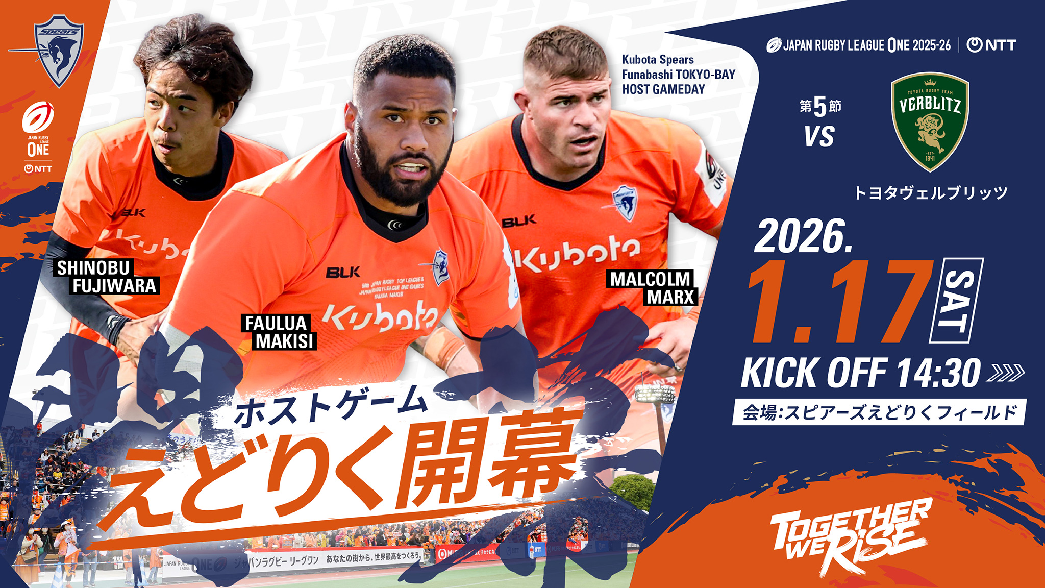 クボタスピアーズ船橋・東京ベイはこの「スピアーズえどりくフィールド」で2019年にホストゲームを行ってから、公式戦では負けなしの24連勝中です。いつしか「えどりく不敗神話」と呼ばれるようになったこのスタジアムと共にスピアーズは成長してきました。そして、今シーズンもスピアーズがえどりくに帰ってきます!今季は、このトヨタヴェルブリッツ戦を皮切りにどの相手は難敵ばかり。だからこそ、このえどりく初戦で勝利して、勢いをつけたいところです。