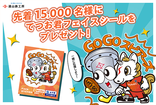 スピアーズのマスコットキャラクター・スッピーと遠山鉄工所の代表社員てつお君がコラボした「スッピー&てつお君フェイスシール」を入場ゲートでプレゼント!
