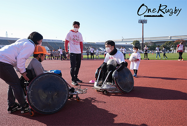 また体験会の後には、スピアーズの選手&元車いすラグビー日本代表の三阪洋行さんチームと東芝元選手の廣瀬俊朗さん・松田努さん・望月雄太さんによるエキシビションマッチを行います。