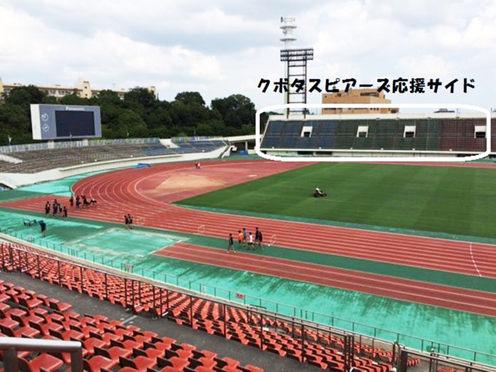 ・クボタスピアーズ応援サイドはバックスタンドの電光掲示板側となります。