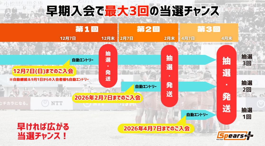 ■抽選1~3回は入会者が対象!早期入会で最大3回当選チャンス!