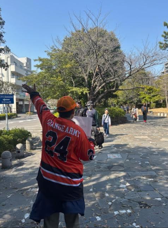 試合前にスピアーズえどりくフィールドに向かう緑道にて、インフォメーションやファンサービスを行う「おもてなしテント」やキッチンカー、「なごみの家 葛西南部」の利用者をはじめとする地域の皆さまによる誘導ボランティアを配置し、来場者の皆さまをおもてなしします。