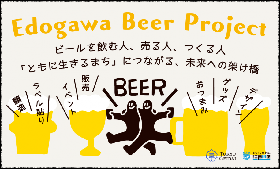 「ともにビール」はEdogawaBeerProject公式ビアブランドとして誕生した「地域のみんなで"ともに"楽しむ」をコンセプトとしたビールです。障がいのある方など、さまざまな人がデザインや制作に関わりながら、ひとつのビールを作りあげました。飲む人も、つくる人も、みんなが笑顔になれる、そんな優しさが詰まった一杯をスピアーズえどりくフィールドで行う全試合で販売します。