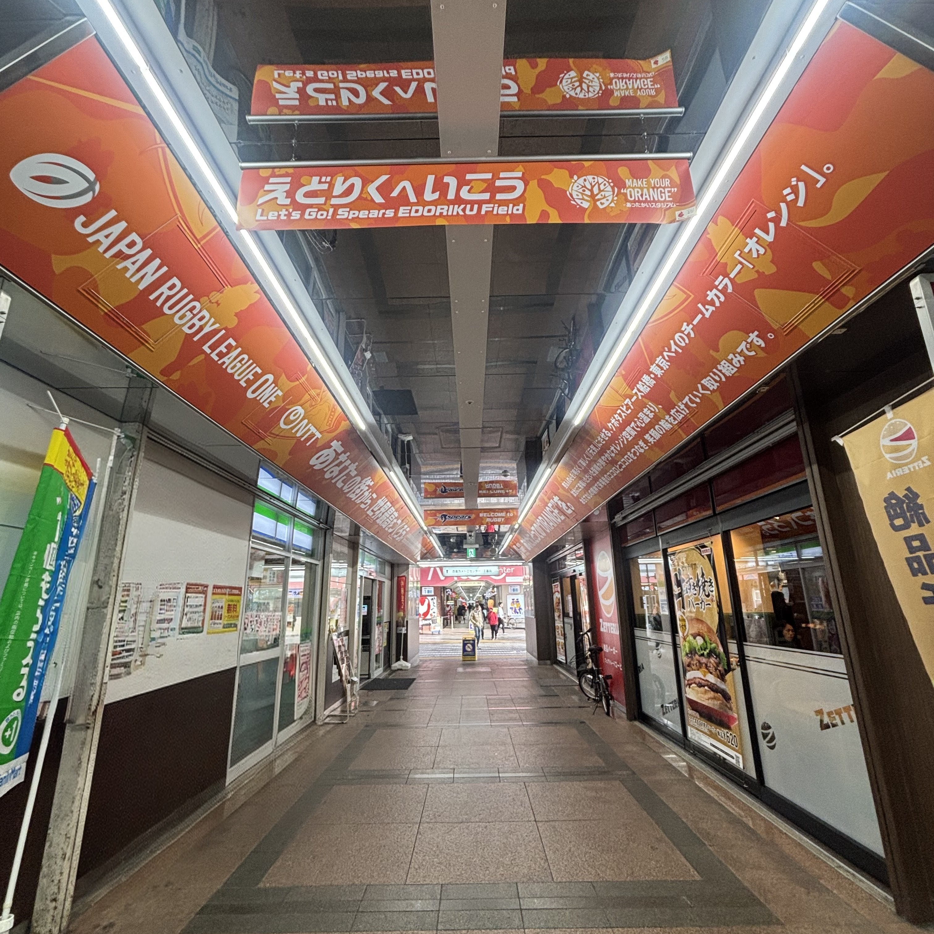 東京メトロ西葛西駅周辺からスピアーズえどりくフィールド周辺を、様々なオレンジ色の装飾によって賑わいを視覚的に演出し、試合への高揚感や期待感を会場までの道のりで演出します。装飾デザインの一部には「エドフォント」をはじめとした障がいのある方のアートデザインを採用しています。