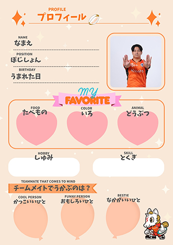「プロフ帳を書いていて、新鮮だけど懐かしい気持ちになりました。普段では聞かれることのない質問も多かったので、書いていてこちらが癒されました。他の選手たちのプロフ帳も見ましたが、子どもの気持ちに戻ってすべて平仮名で記入している選手もいて面白かったです。ぜひ試合会場で、選手たちのプロフ帳を探してみてください」