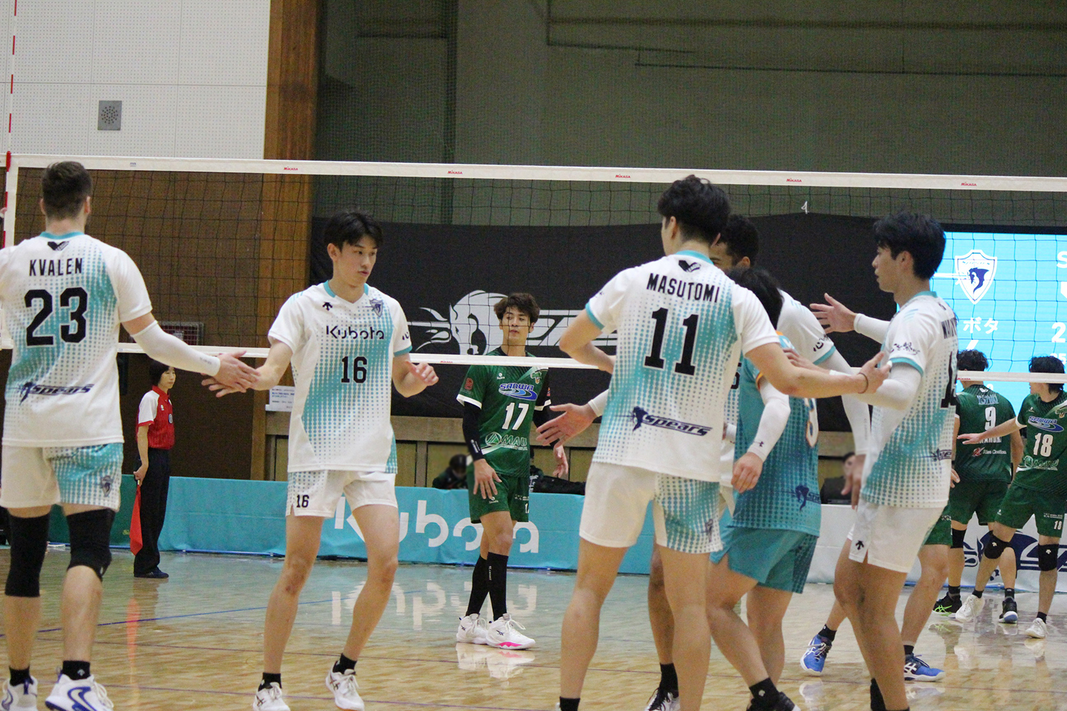 | 第1セット | 劉・小磯(井上)・クヴァーレン・バーナード(ムヤカバング)・若林(森)・枡富(柳田) | L 木村、久保田 |