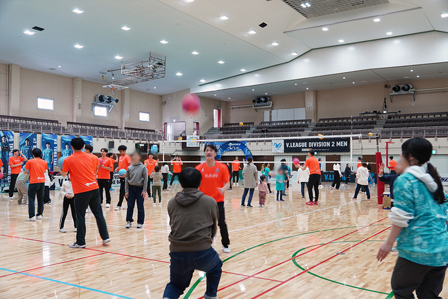 試合終了後、スピアーズの選手と一緒にバレーボールができます!サーブやレシーブなどをお気軽に体験できるイベントです。ご参加をお待ちしております!