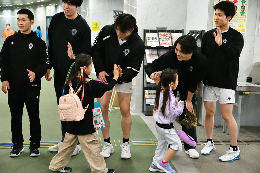 試合終了後、スピアーズの選手が退場口で来場者のお見送りを行います。